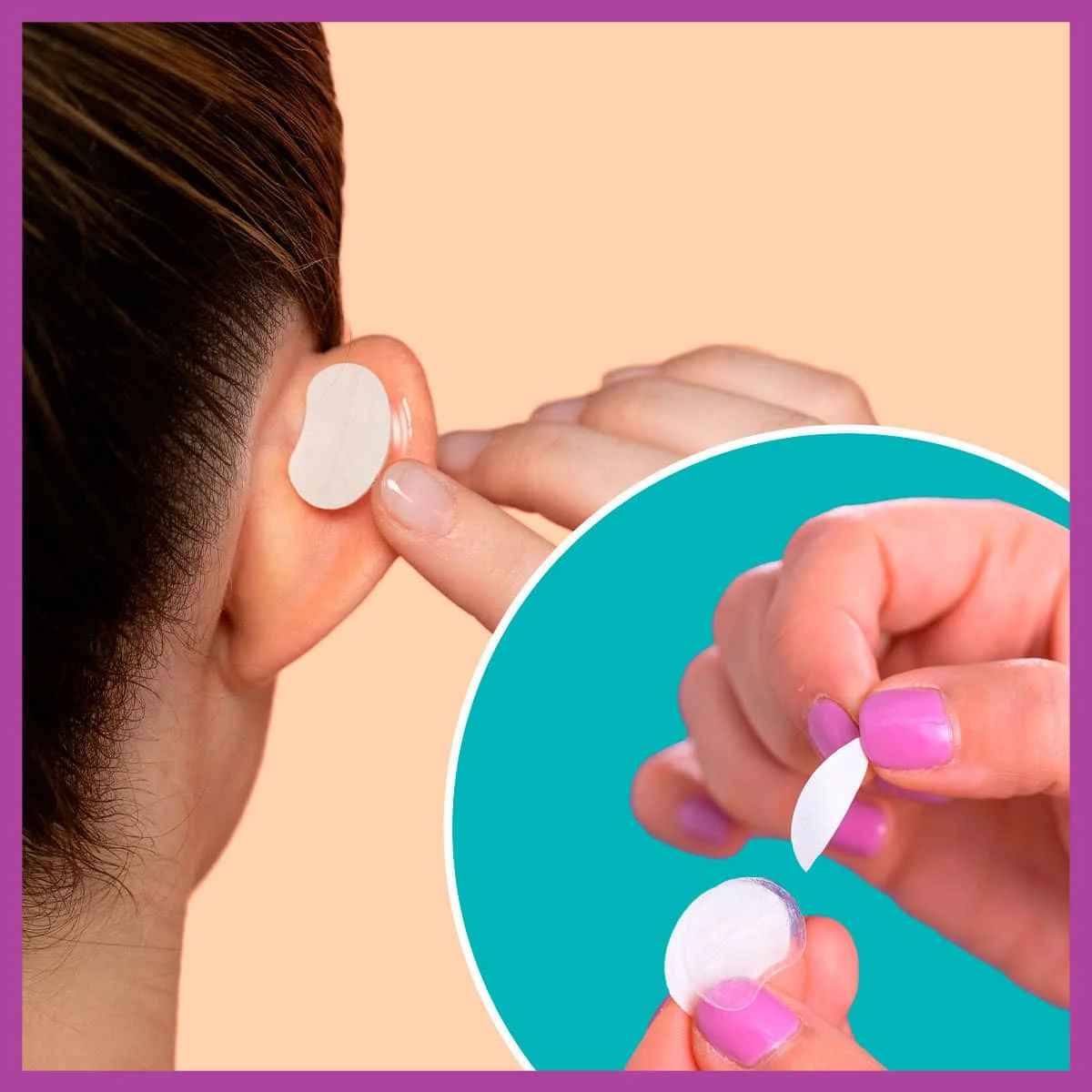 - Kulak tarafına yapışacak yüzeyin koruyucu kağıdını çıkar ve kulağa yapıştır.